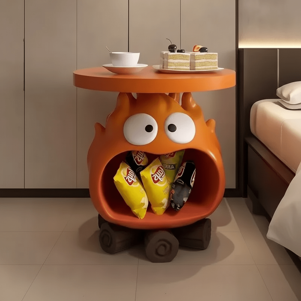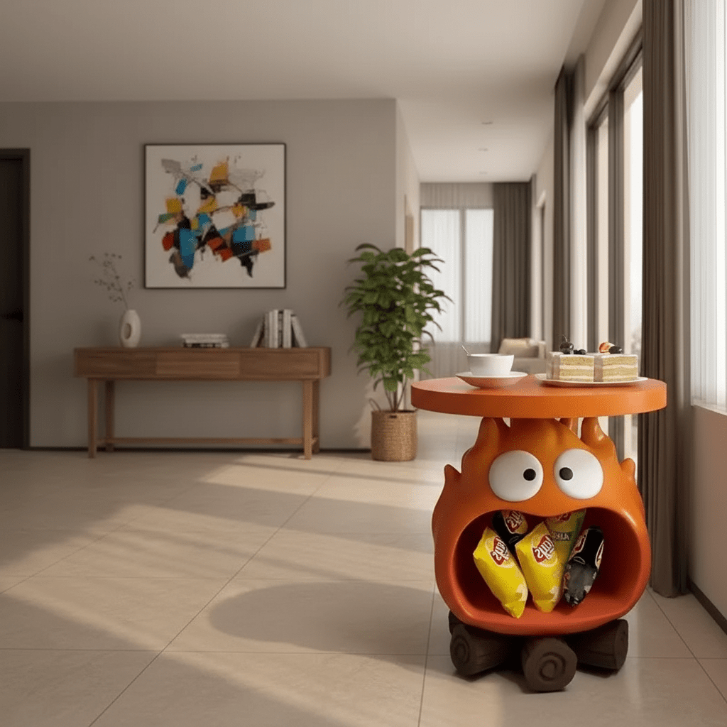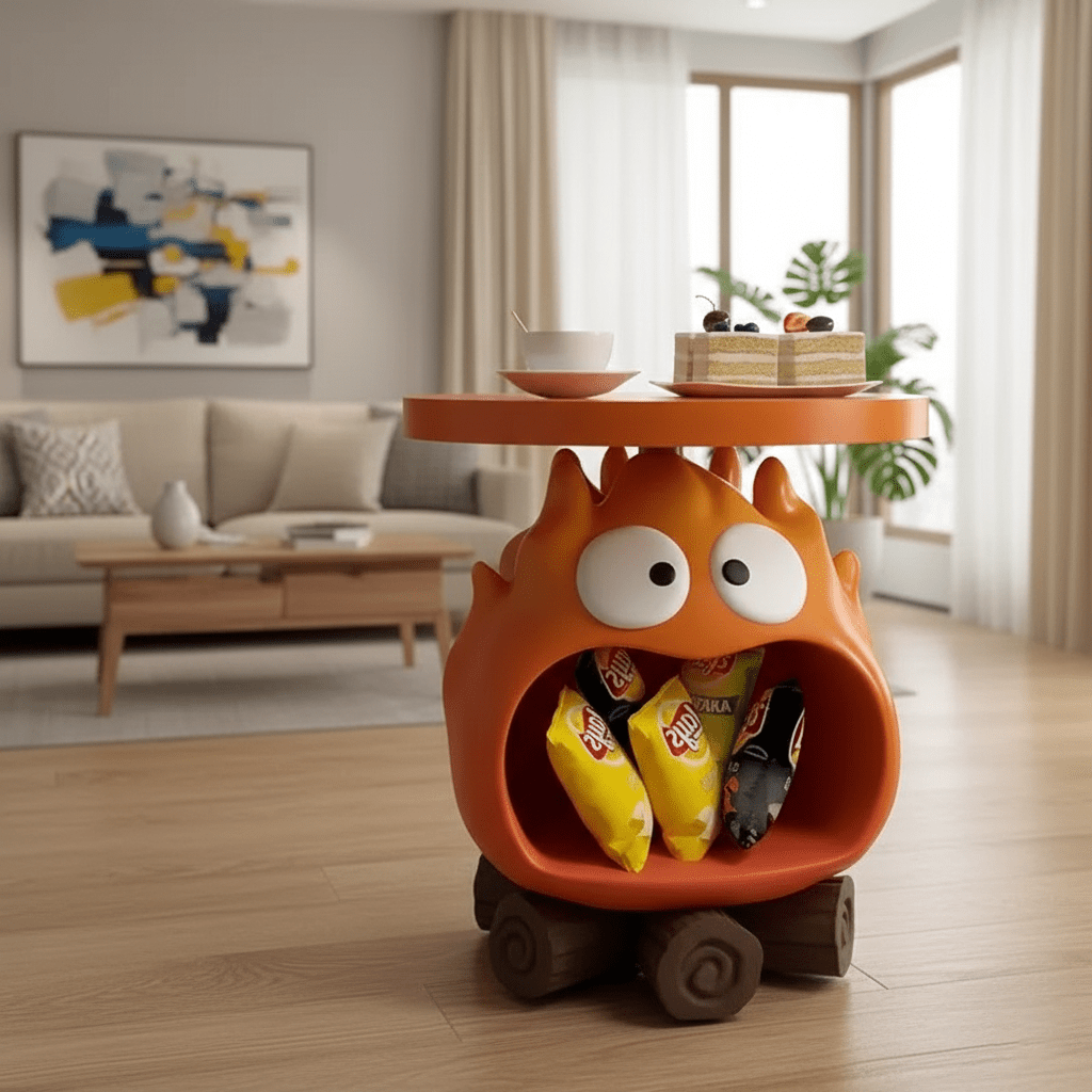 Crafted with smooth curves and a lovable character inspired design, the MOMO table instantly becomes a conversation starter. The built-in storage compartment keeps essentials like remotes, books, toys, or snacks neatly tucked away perfect for clutter free living.