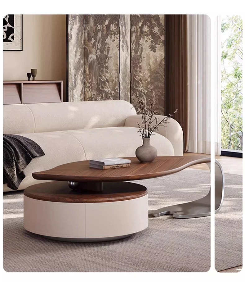 Minimalist Solid Wood White Wax Wood Tea Table for Living Room