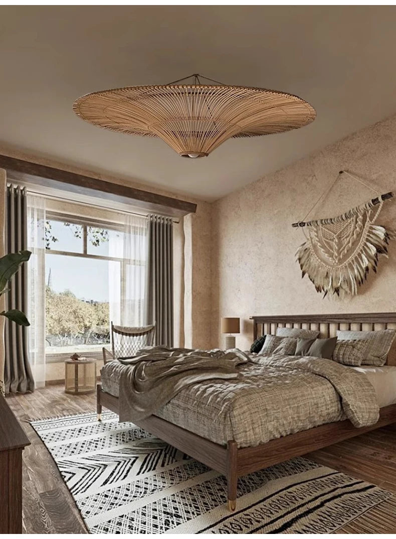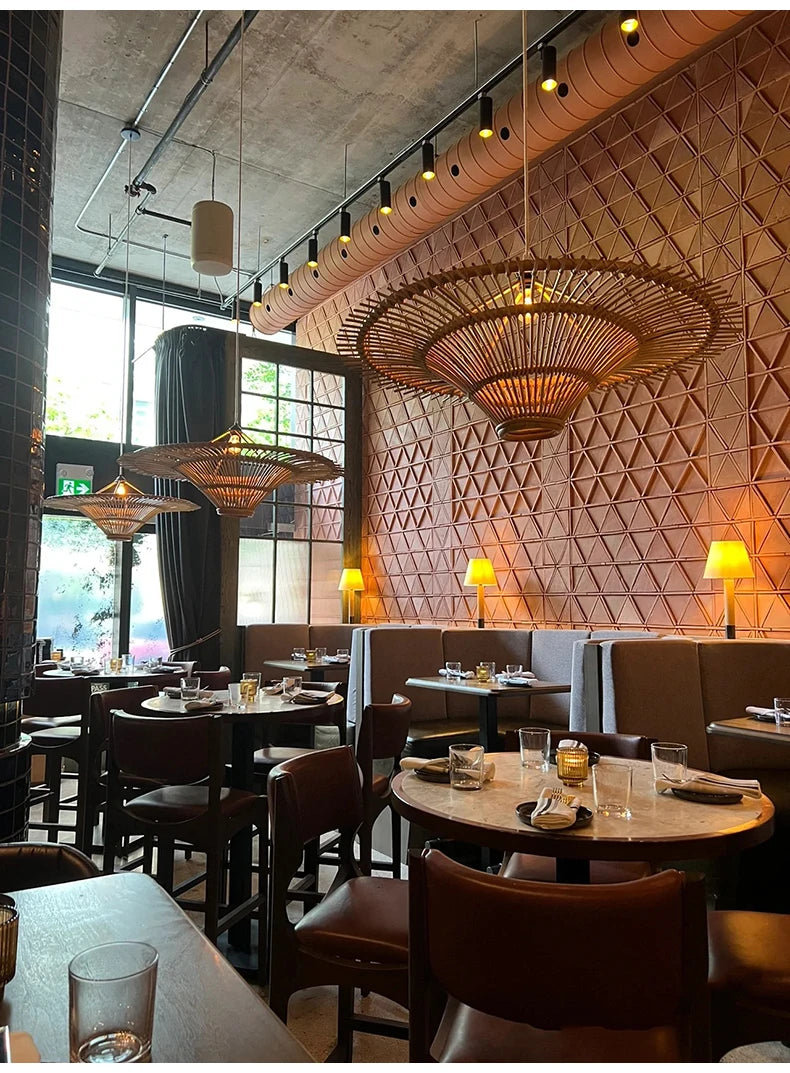 Bohemian Wicker Straw Hat Lamp for Living Room, Restaurant & Shop Decor