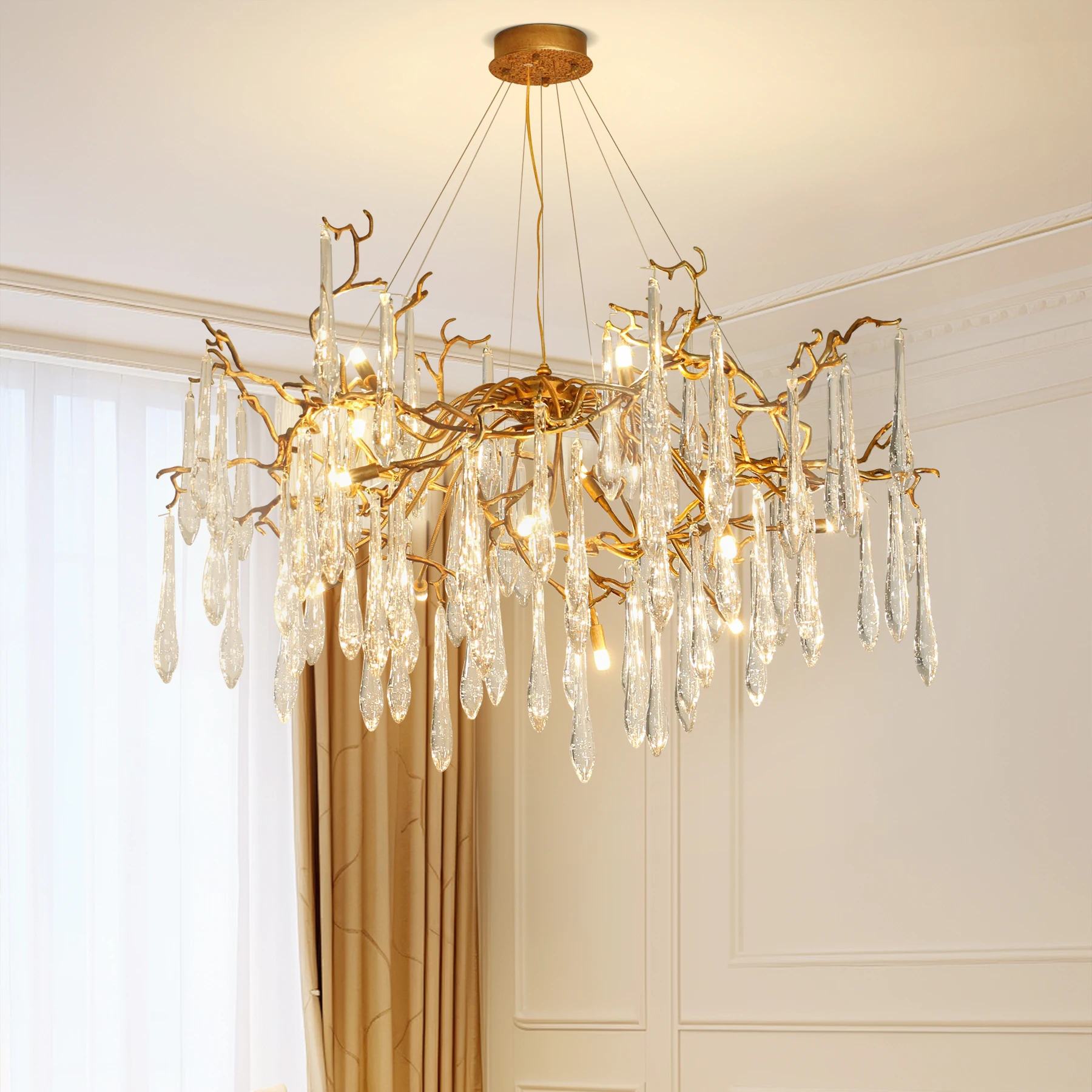 Luxury Round Hanging Waterfall Crystal Pendant. This stunning chandelier is the epitome of elegance, designed to create a dazzling centerpiece in any room.