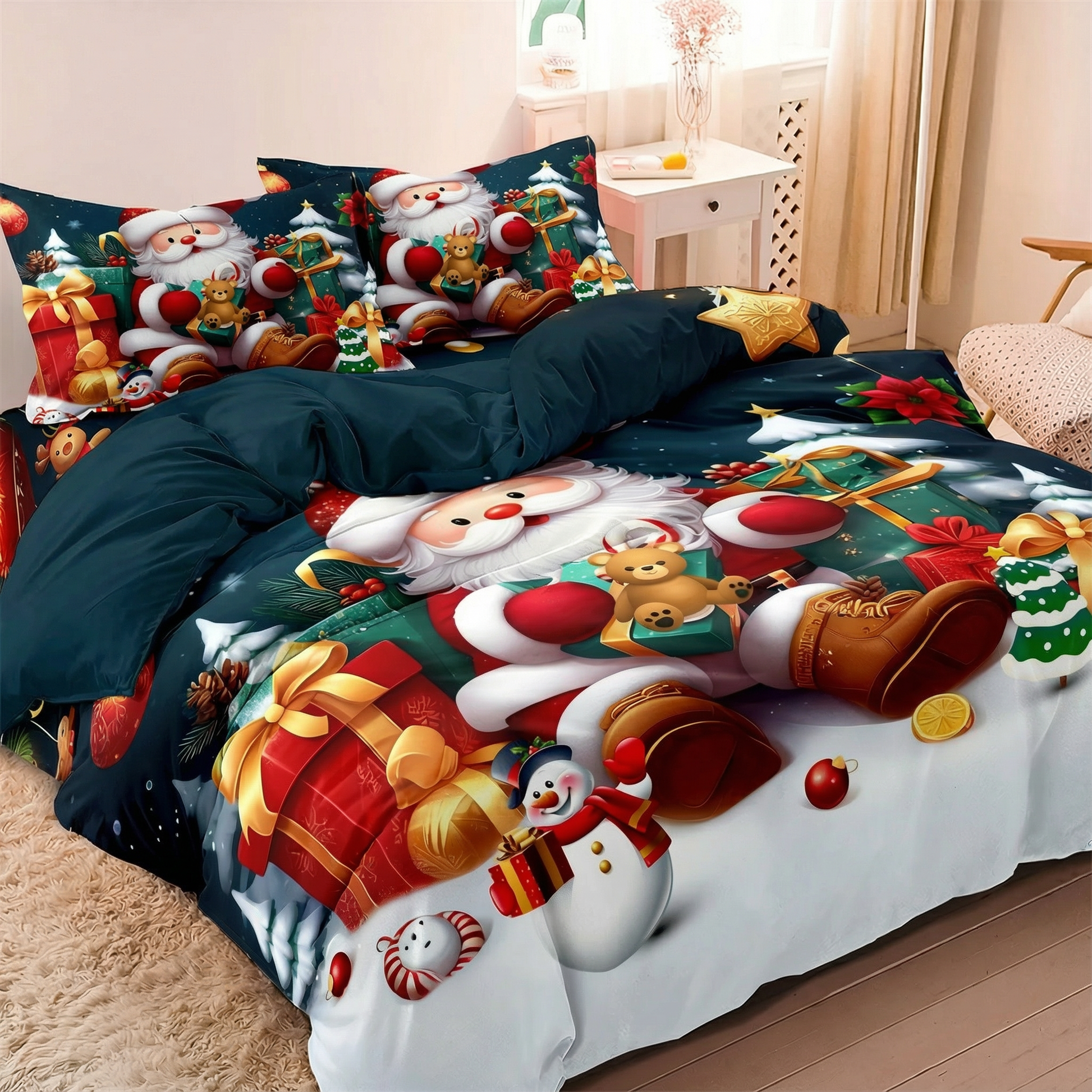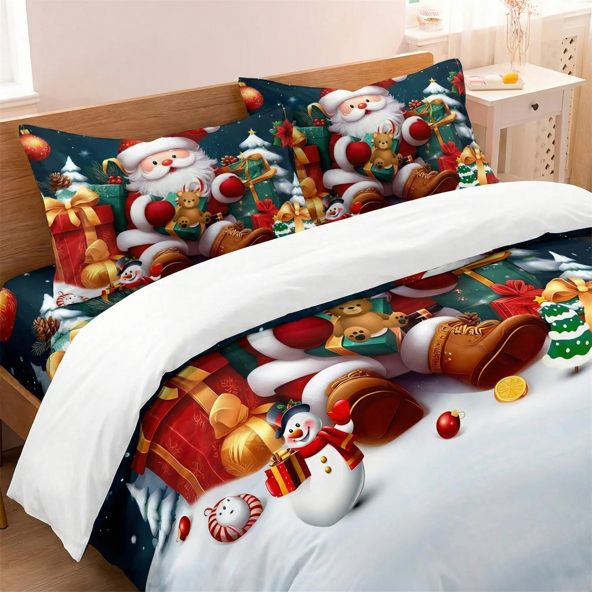 Cozy Christmas Bedding Set Santa & Snowman Duvet Cover 3PCS Gift Pack