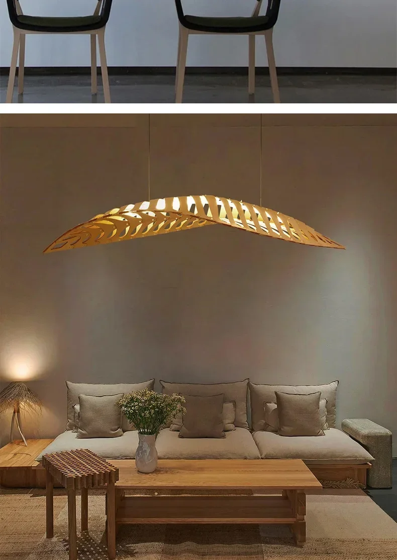 Bring a touch of Nordic minimalism and artistic elegance into your space with this Creative Fish Bone Wood Chandelier, designed in the timeless Wabi Sabi style. Featuring a unique fish bone inspired design, this handcrafted wooden pendant light blends rustic charm with modern creativity, making it a stunning centerpiece for living rooms, dining areas, cafes, bars, and restaurants.