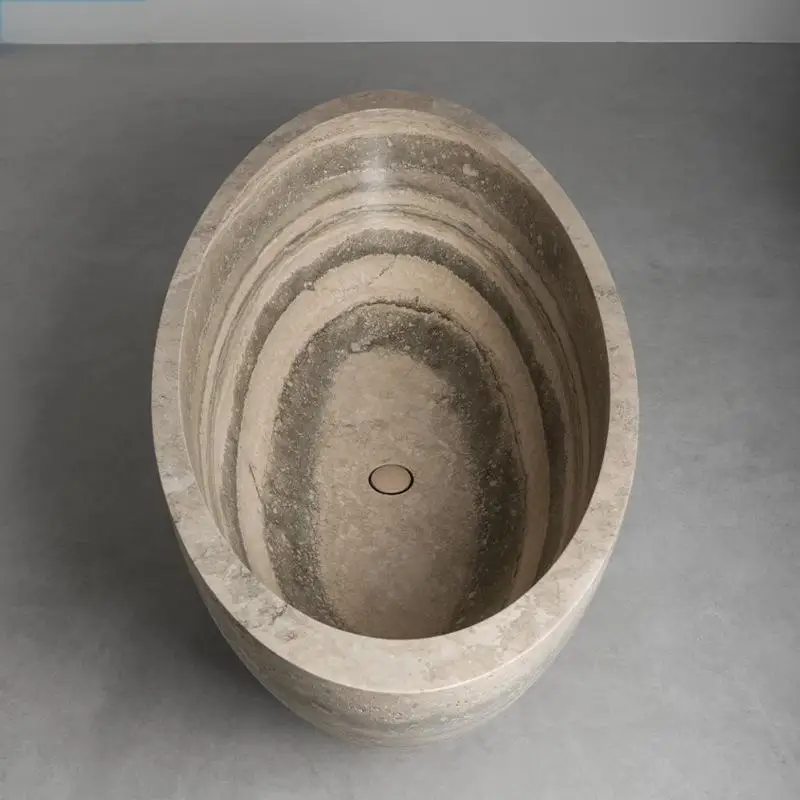Customizable Natural Marble Bathtub Handcrafted Natural Stone Soaking Tub for Villas & Hotels