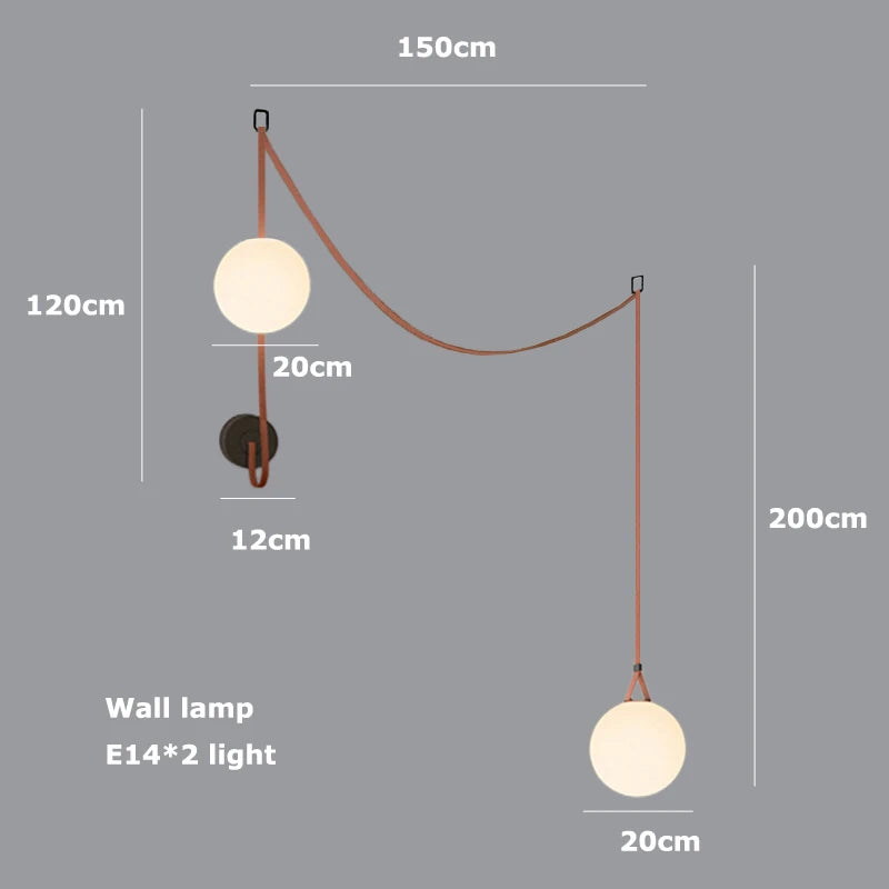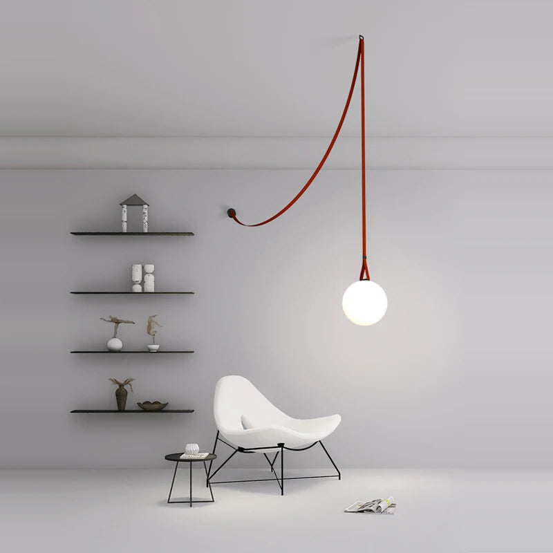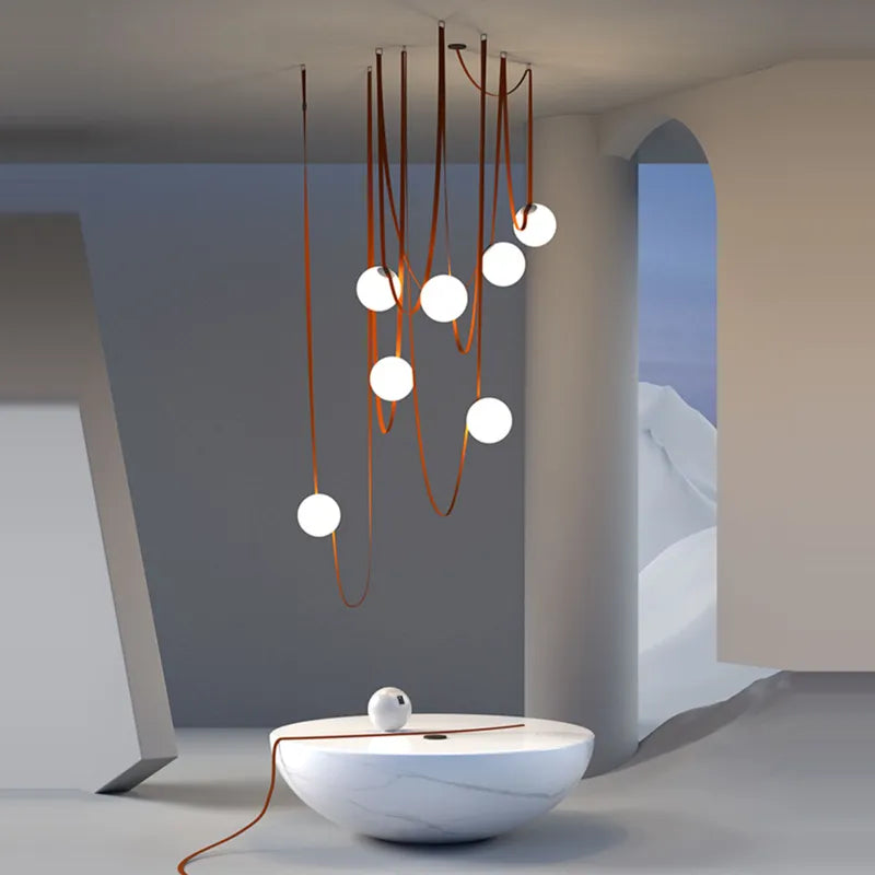 🌈 Illuminate your surroundings in style with this avant-garde lighting solution. The dynamic combination of textile and leather belts, glass, and iron materials creates a visually stunning masterpiece that doubles as a statement piece and functional lighting fixture.