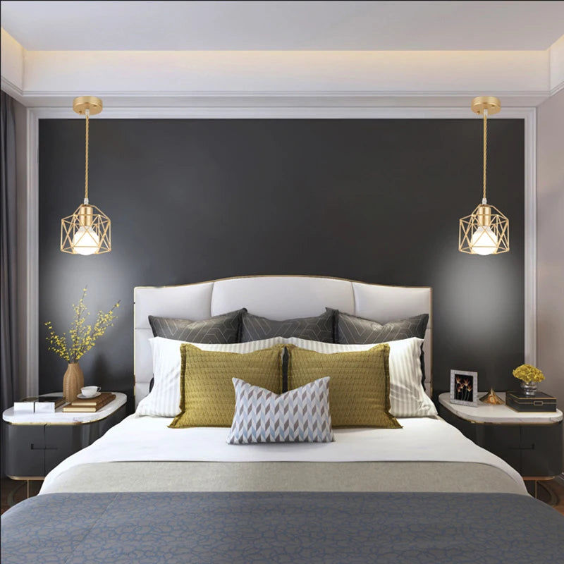 Elegant Gold & Black Hanging Chandelier. Featuring a striking modern design, this chandelier combines sleek black accents with luxurious gold finishes, creating a timeless piece that complements any contemporary or classic decor.