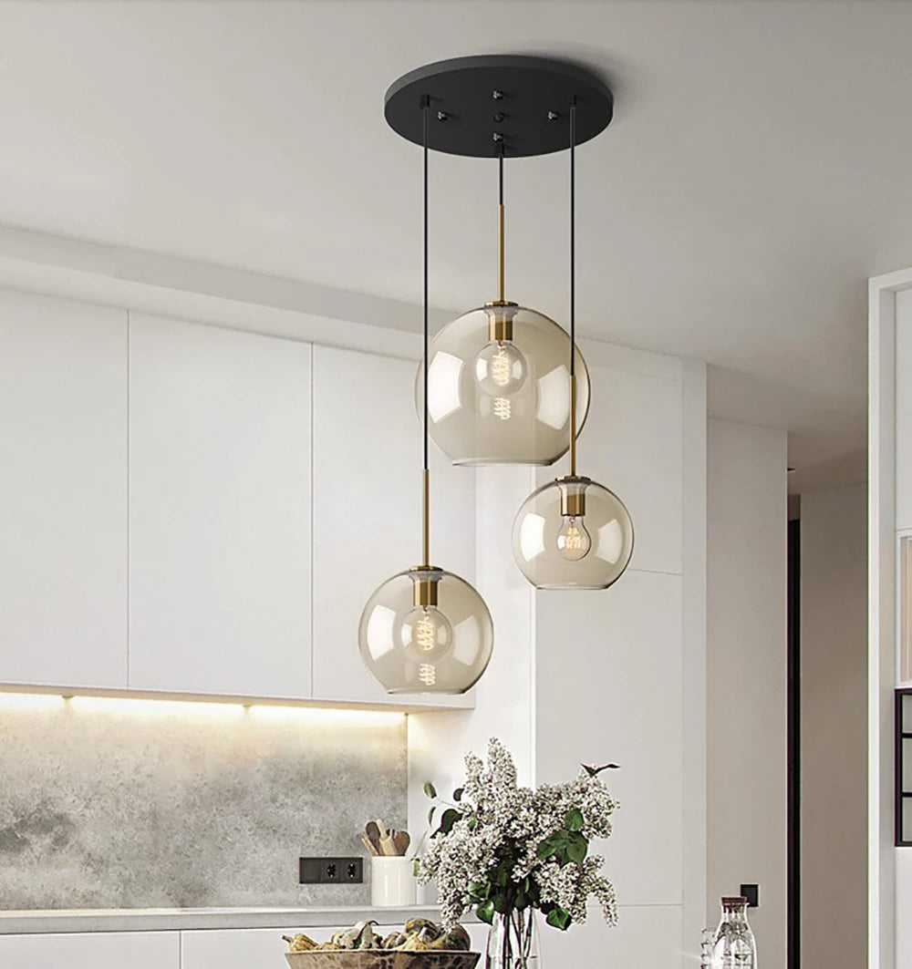 Exquisite Glass Lustre Hanging Pendant. Designed to create a warm and inviting atmosphere, this stunning pendant light is perfect for dining rooms, living areas, kitchens, cafes, and loft spaces. Its sleek Nordic-industrial design seamlessly blends with modern, minimalist, and contemporary interiors, making it a versatile lighting solution for any setting.