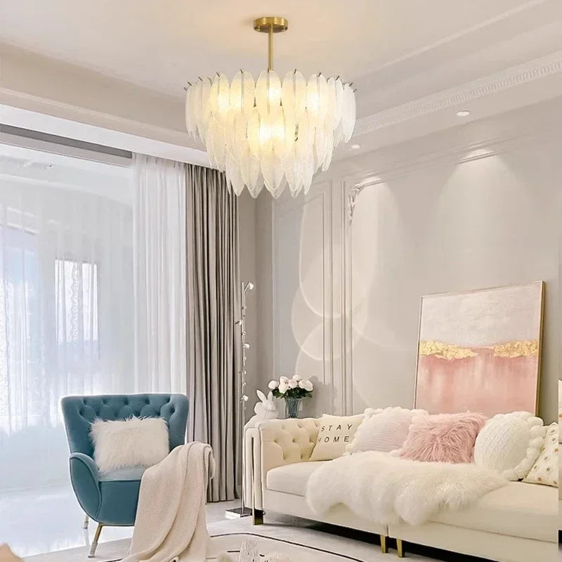 Glamorous Gold Crystal Chandelier, designed to bring a sophisticated glow to living rooms, dining areas, and upscale interiors. This stunning pendant features a French-inspired gold finish and dazzling glass crystal accents, creating a radiant centerpiece that blends modern charm with classic elegance.