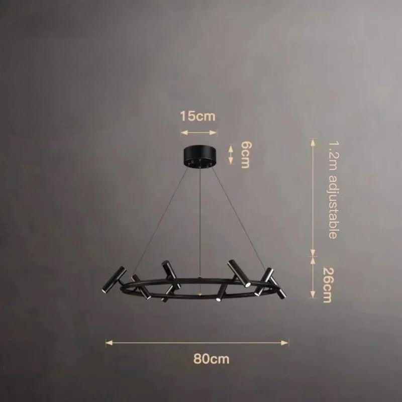 Italian Designer Round Ring Chandelier Modern Black Pendant Light for Dining & Living Spaces