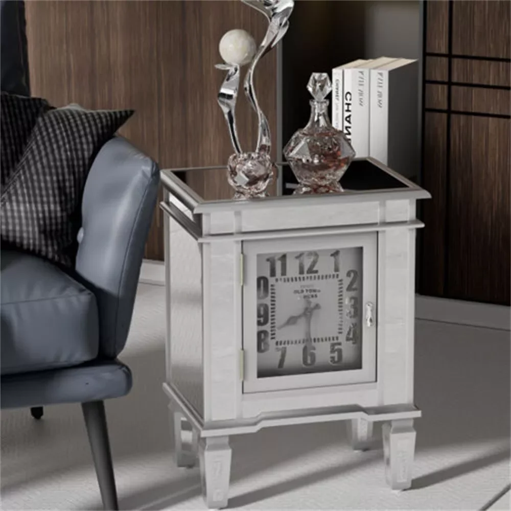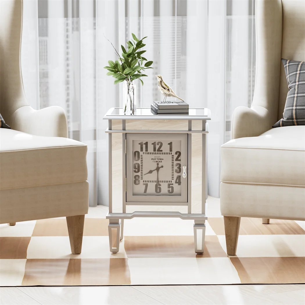 LUVODI Modern Mirrored End Table Sofa Side Accent Table with Clock Display n 1 Door Cabinet for Bedroom,Living Room,Study