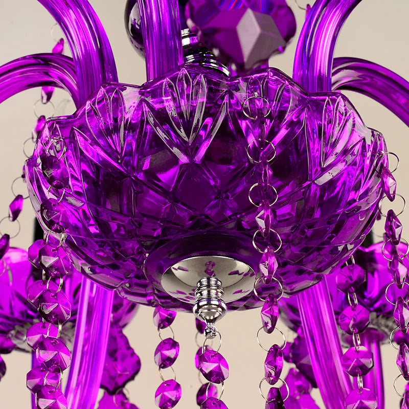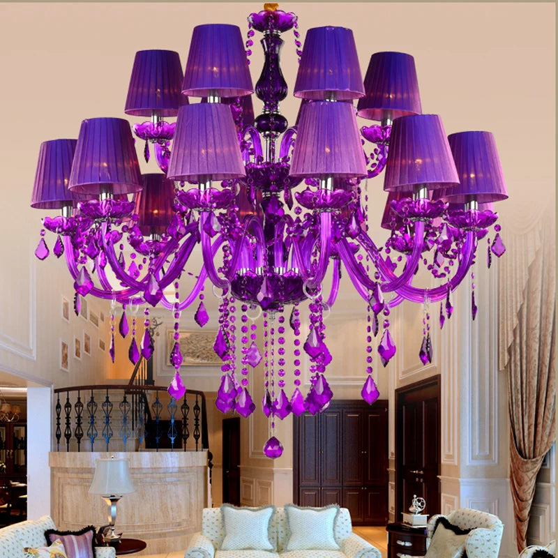 royal elegance and sophistication to any space. Featuring exquisite purple crystal accents, this chandelier creates a mesmerizing glow, making it the perfect choice for villas, weddings, living rooms, and event spaces. Its timeless design effortlessly combines luxury and charm, transforming any room into a dazzling showcase of beauty and style.
