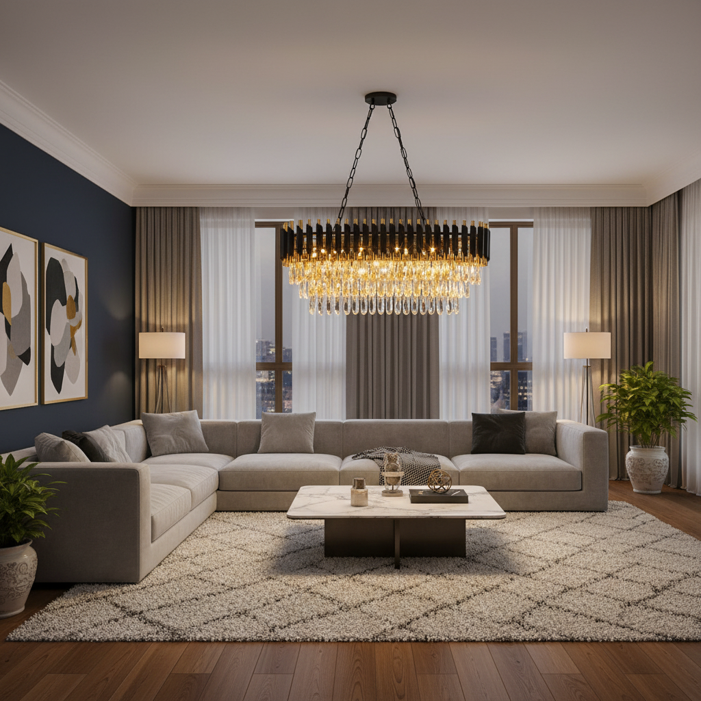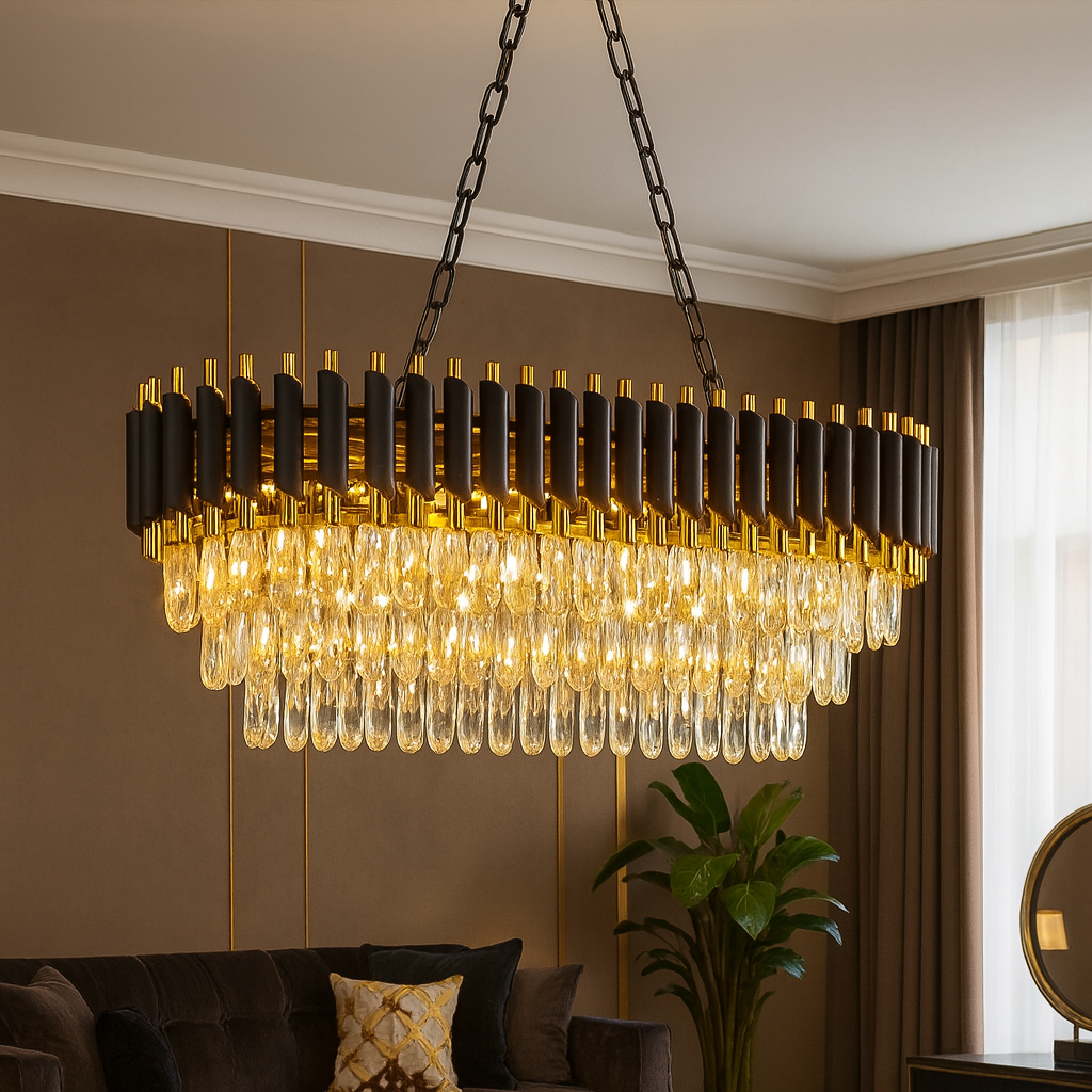 Transform your space with the breathtaking beauty of this Luxury Black Gold Crystal Chandelier. Designed to impress, this elegant light fixture brings a rich, high-end feel to dining rooms, living rooms, and bedrooms. Featuring sparkling crystals and a bold black gold finish, it reflects light beautifully, creating a warm and glamorous atmosphere. This chandelier is perfect for modern homes, luxury apartments, and stylish interiors that demand attention and sophistication.