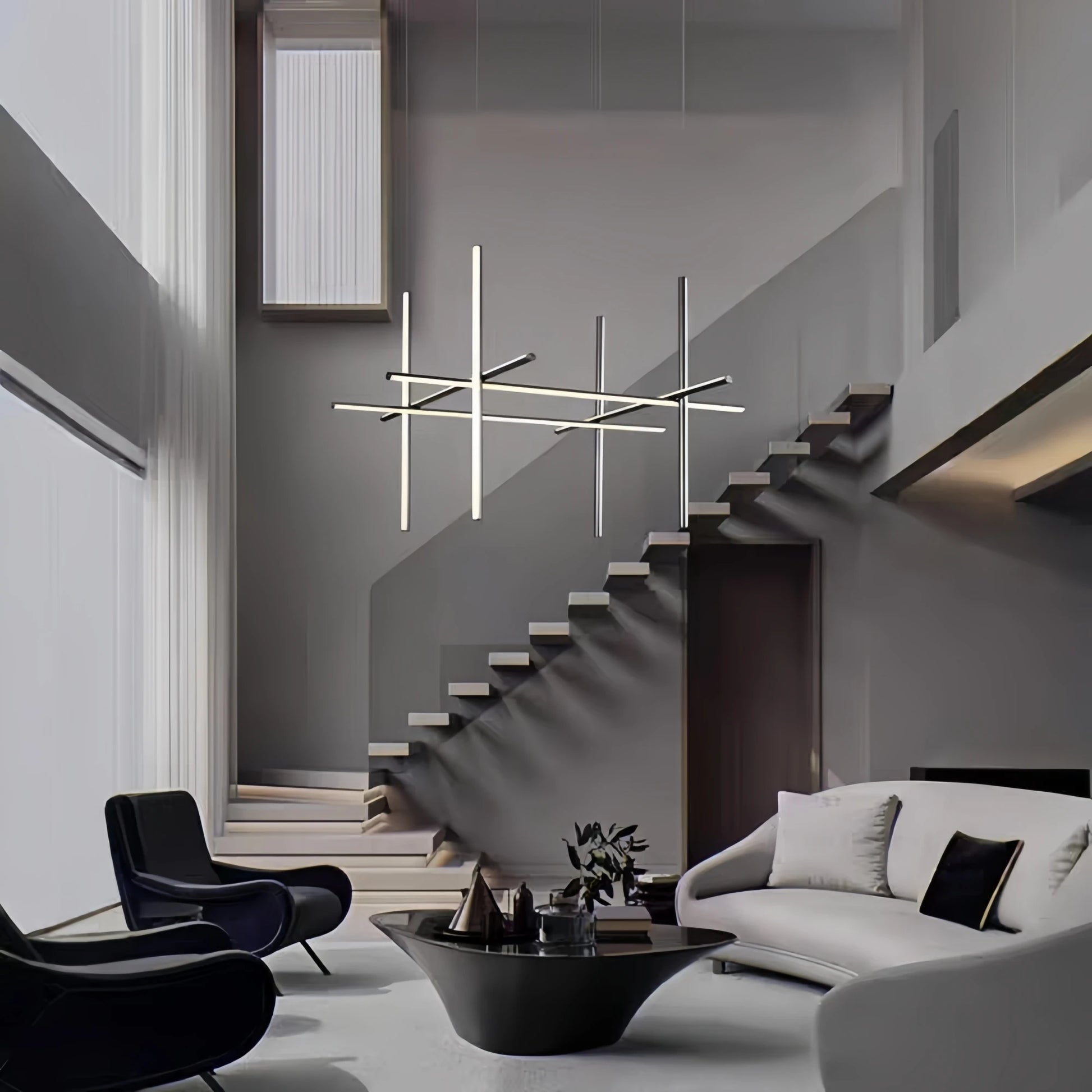 Crafted with precision-engineered gold tubes and a sleek post-modern silhouette, this chandelier delivers a perfect balance of luxury, innovation, and sophistication. Each linear beam radiates a soft, ambient glow, illuminating your villa, kitchen, or bar with effortless contemporary charm.