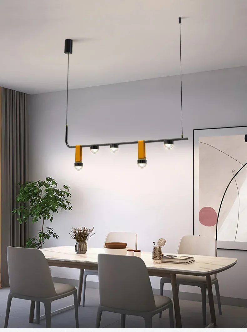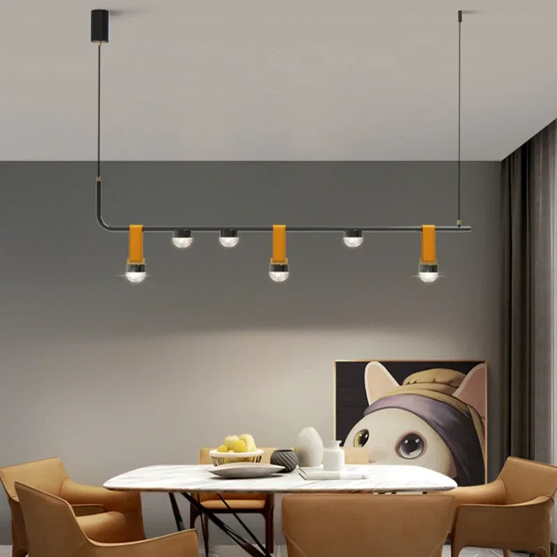 Luxury Long Leather Chandelier — a striking blend of contemporary design and rich materials. Crafted with a sleek leather-wrapped rod and minimalist metal accents, this pendant light adds a touch of sophistication to hallways, office desks, dining areas, and modern living spaces.