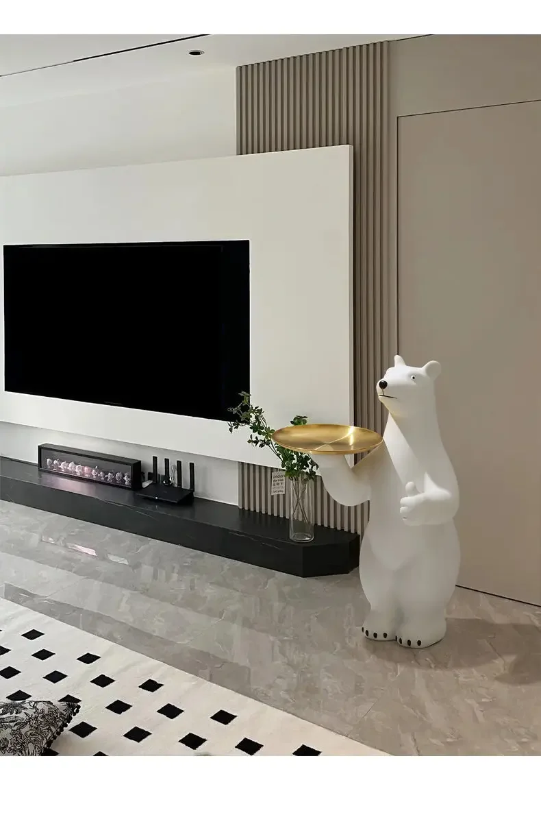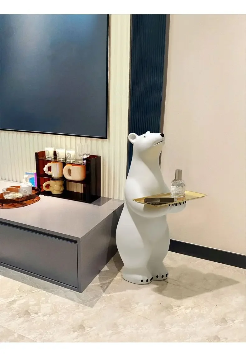 Luxury Polar Bear Side Table – 83cm Oversize Tray Table for Living Room & Home Decoration