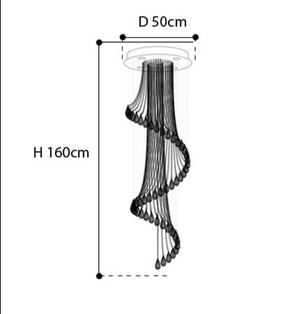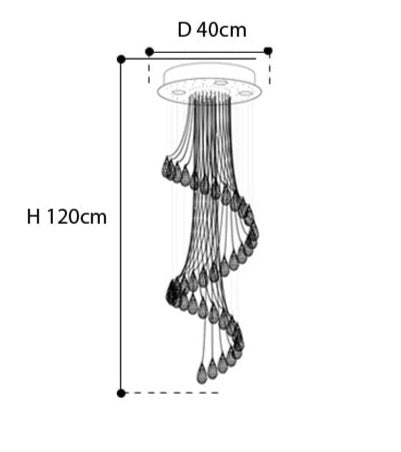 This chandelier is designed to impress with its D40cm H120cm size, making it ideal for stairwells and high ceilings. The shadeless design directs light both upward and downward, casting a beautiful glow throughout the room. đ«
