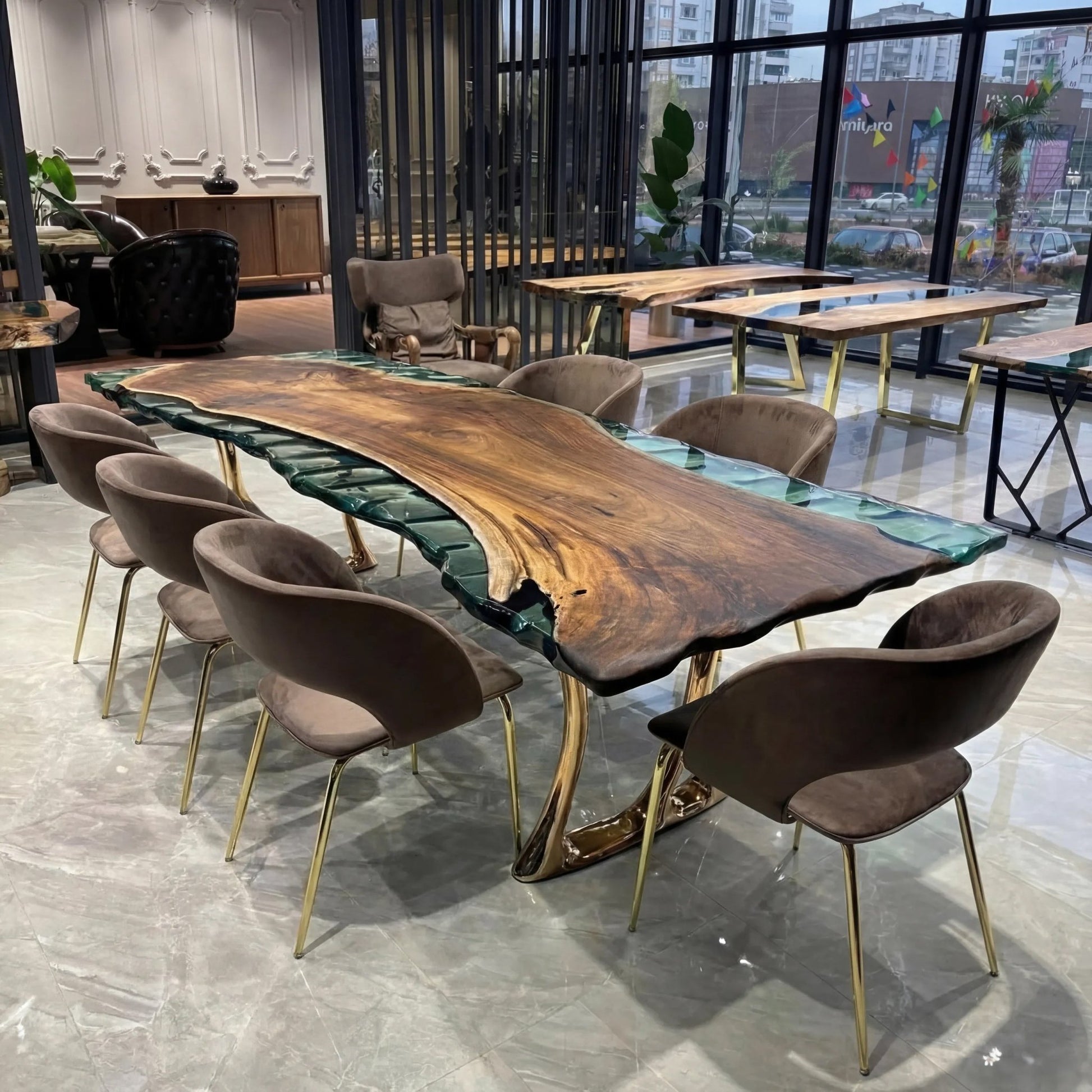 Modern Luxury River Coffee Table Natural Solid Wood & Clear Epoxy Art