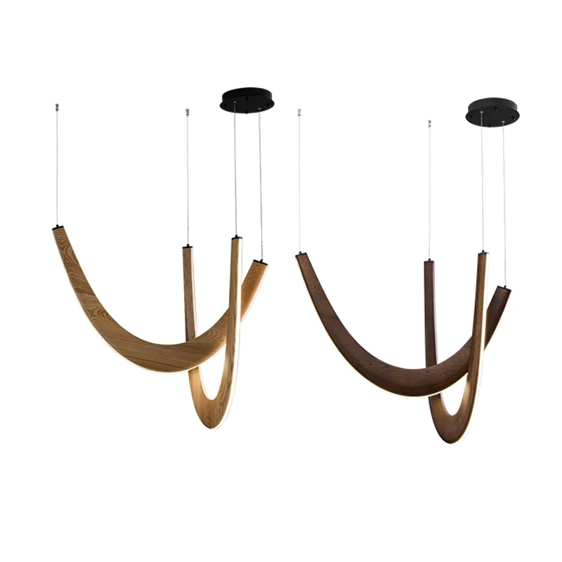 Modern U-shaped Wooden LED Pendant Lights Ideal for Kitchen, Dining & Lobby Lighting