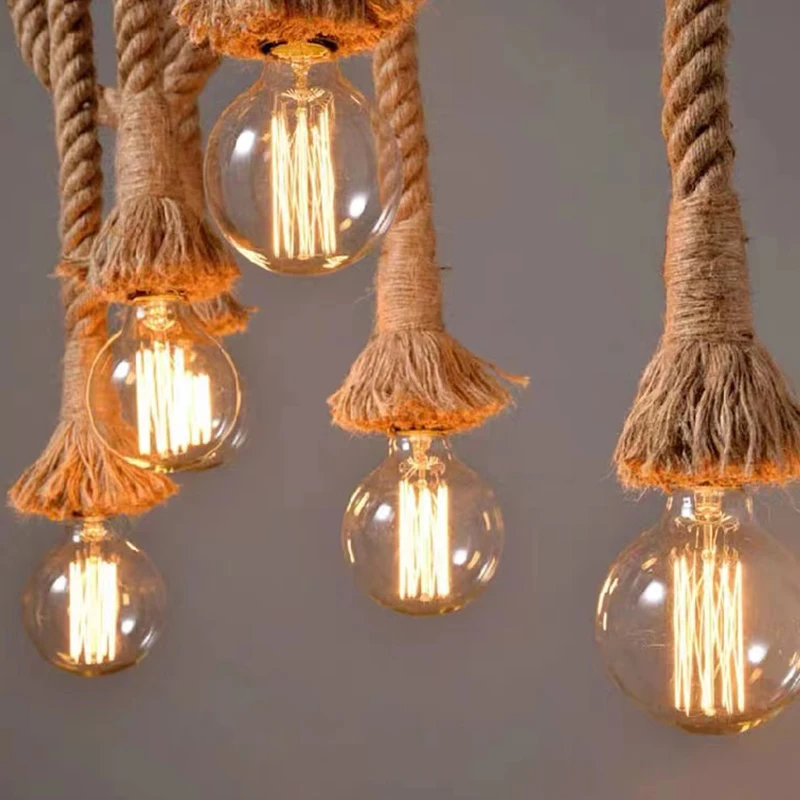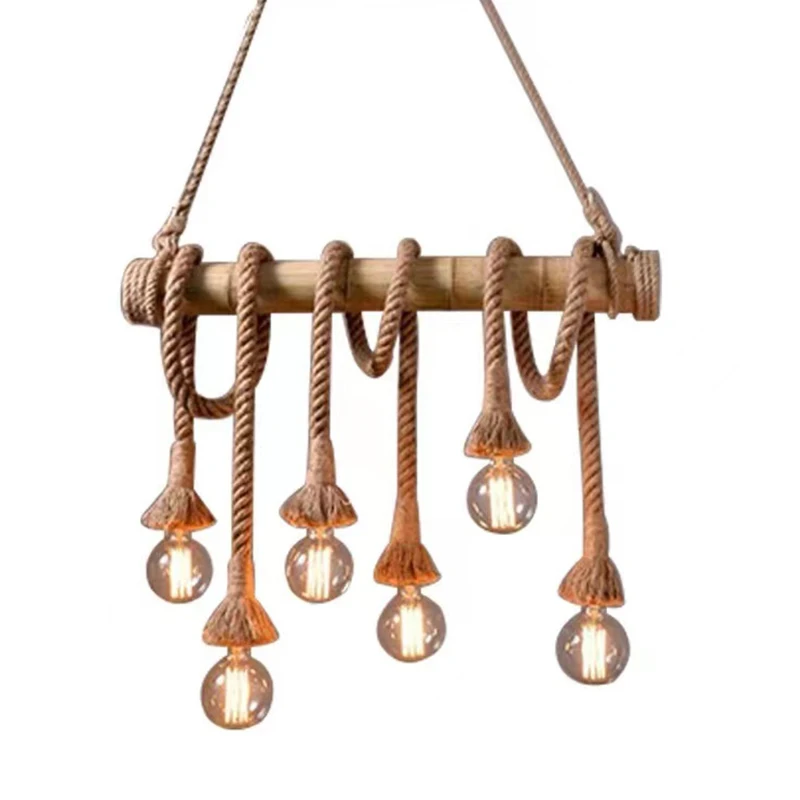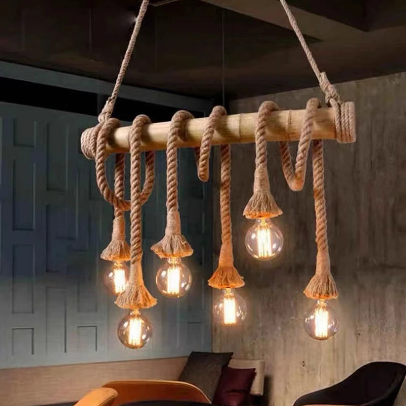 Rope Pendant Light RP0005 Vintage Bamboo Chandelier for Kitchens & Industrial Spaces