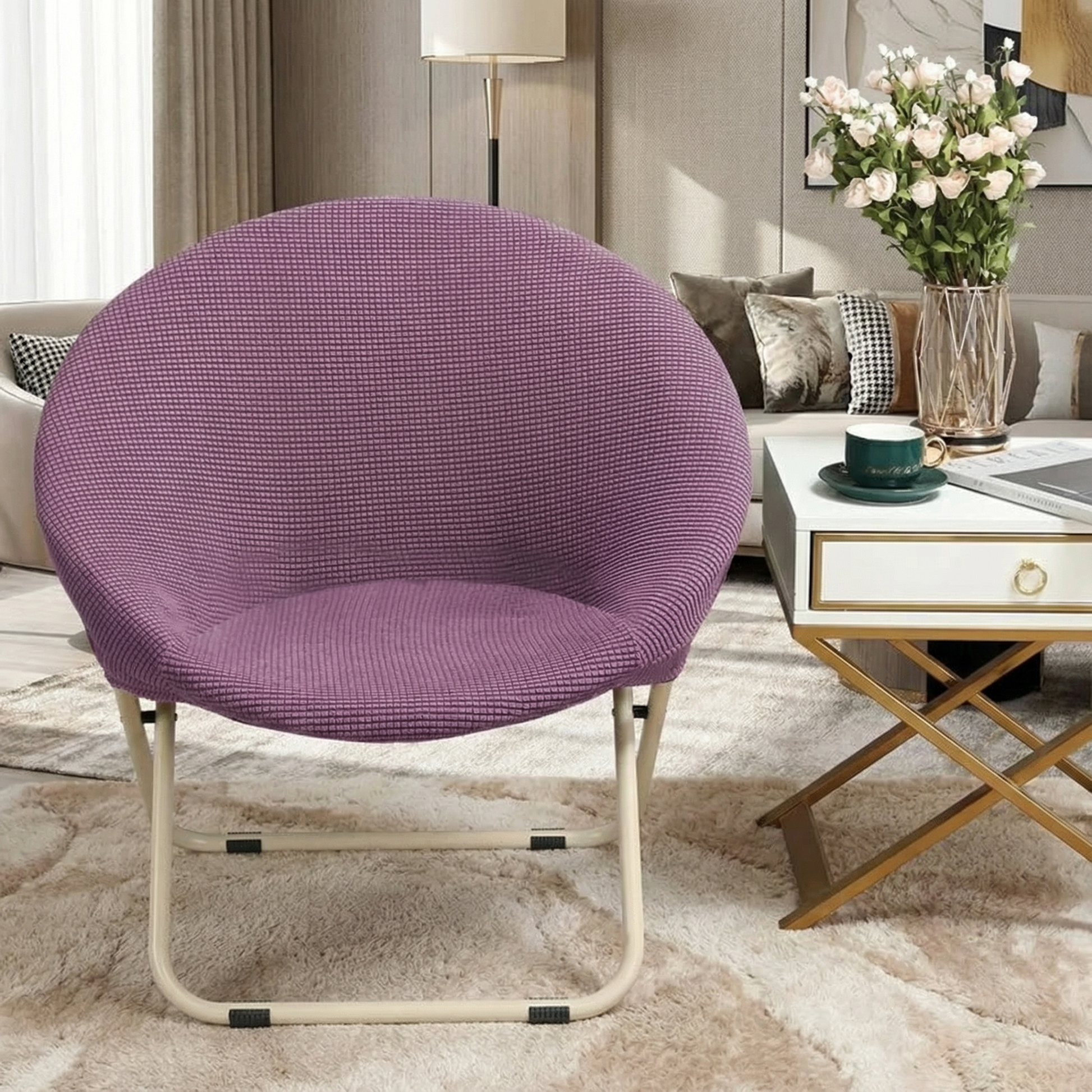 Made from high quality polyester with elastic stretch, it delivers a snug, secure fit on most round moon saucer chairs and lazy folding chairs. The soft, breathable fabric feels comfortable for long sitting sessions, while the durable, fade-resistant material protects against dust, spills, stains, and everyday wear perfect for indoor relaxation or outdoor use.