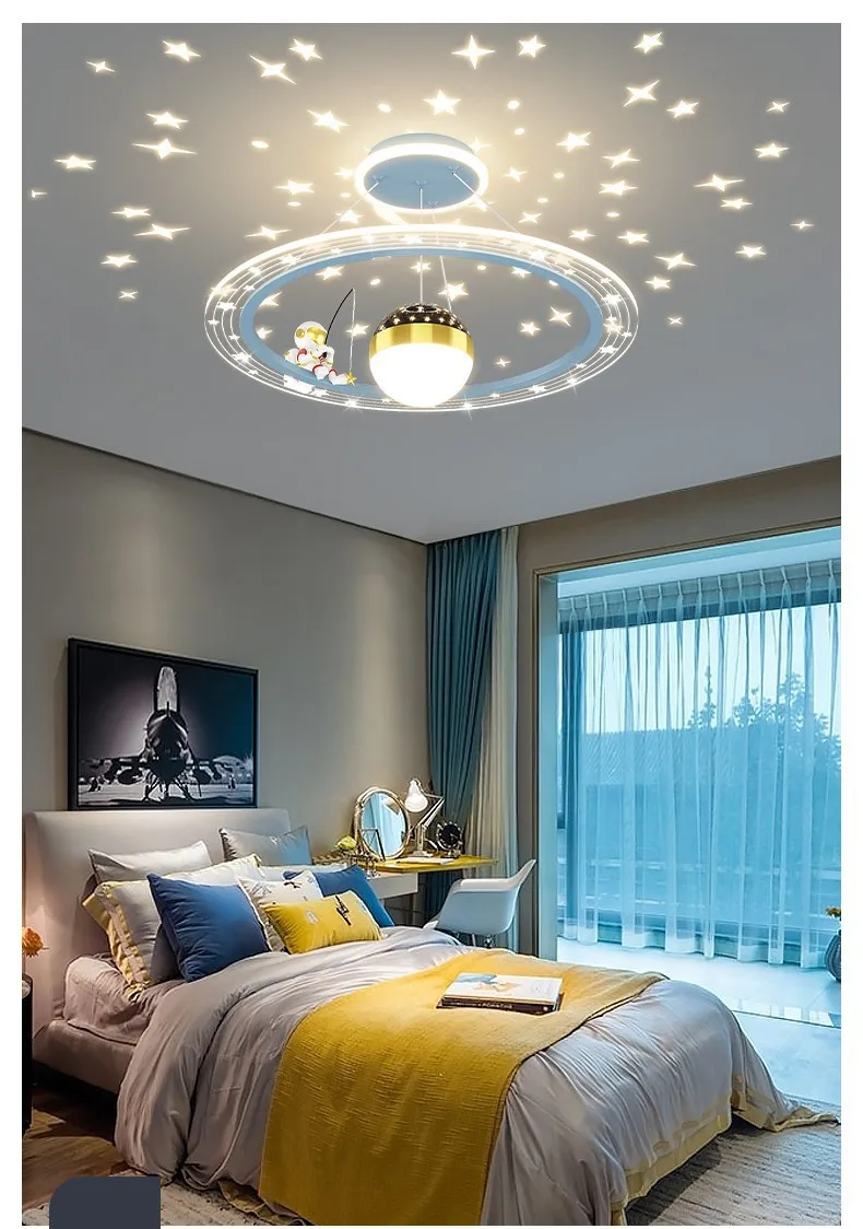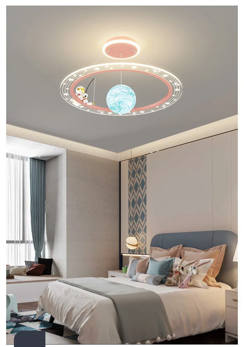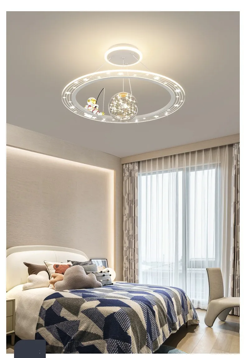 Stylish & Fun Astronaut Pendant Lamp! Designed for space-themed bedrooms, nurseries, and study areas, this modern LED chandelier brings a futuristic touch with its astronaut-inspired design. Featuring remote control functionality, adjustable brightness, and soft, eye-friendly lighting, it creates the perfect ambiance for relaxation, study, or play. Ideal for boys' rooms, kids' nurseries, and sci-fi lovers, this ceiling pendant lamp is a must-have for any little astronaut’s dream space