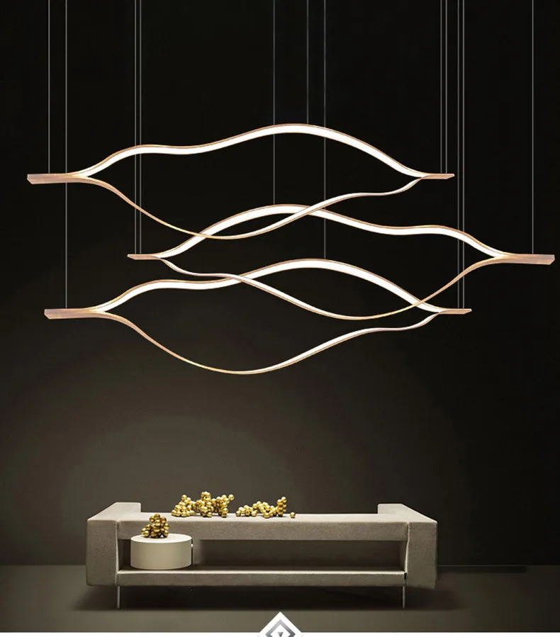 Upgrade your interiors with this stylish postmodern wavy chandelier, a perfect blend of modern creativity and luxury design. Crafted with high-quality materials, this LED hanging lamp adds a unique artistic touch to living rooms, restaurants, hotels, exhibition halls, and fashion stores. Its elegant wave-like structure creates a stunning visual effect, making it not just a light fixture but a statement piece of décor.