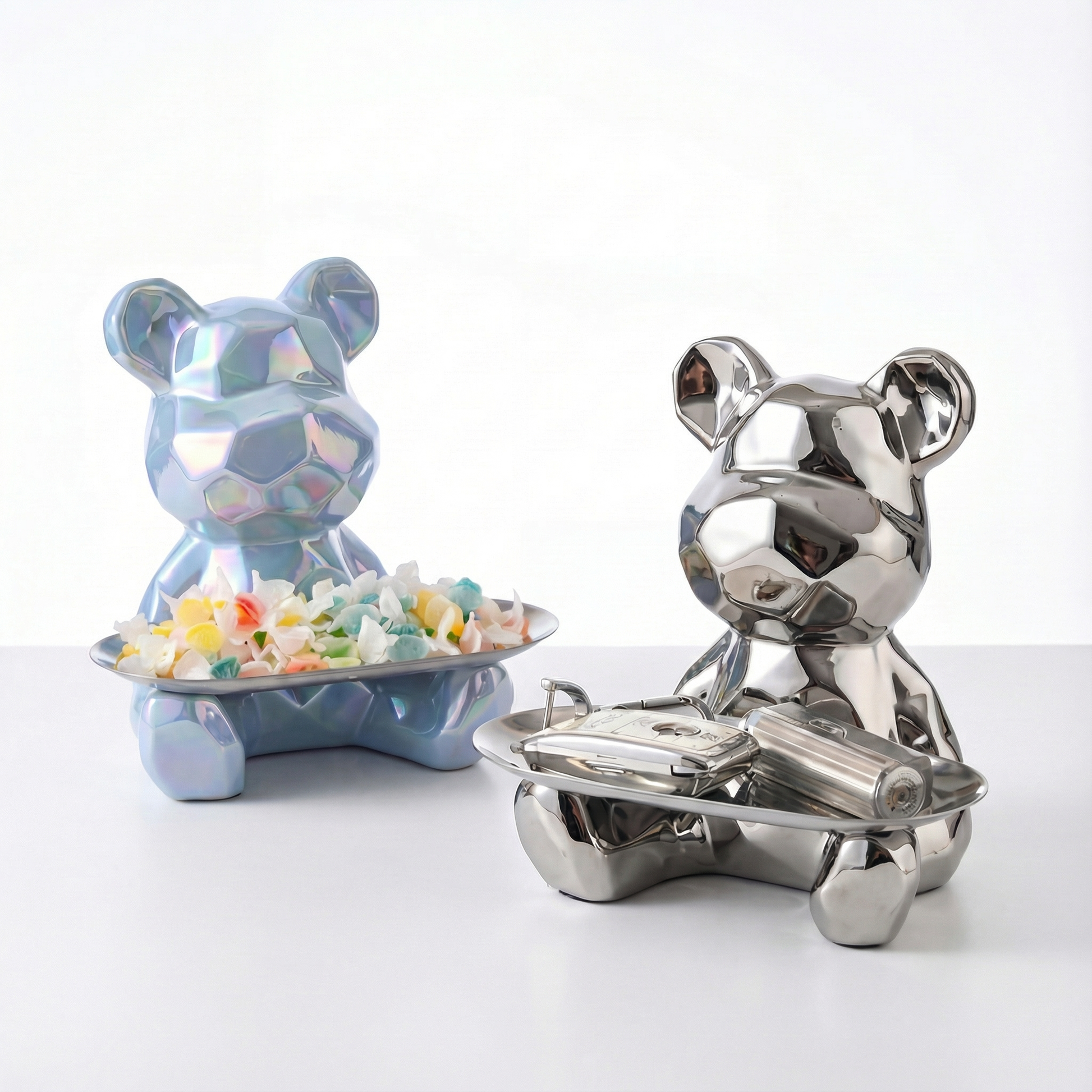 Geometric Bear Tray Statue with Smart Storage Perfect for Living Rooms & Any Space