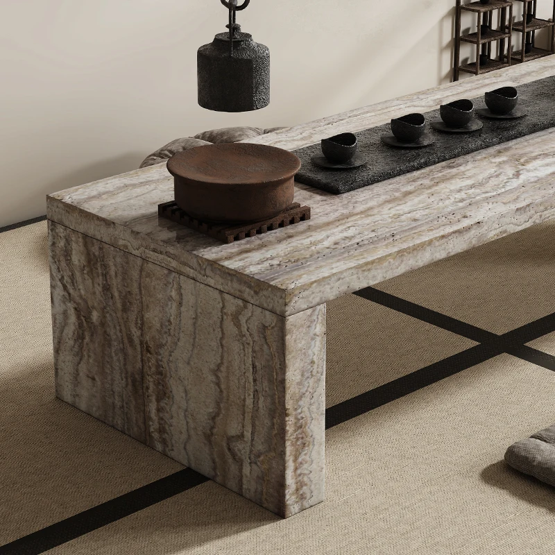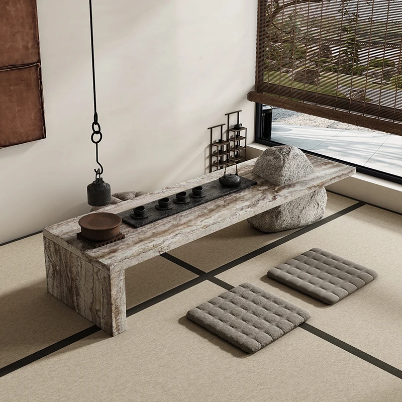 Wabi Sabi Zen Tea Table With Minimalist Marble Desk for Living Room, Office & Meditation Spaces