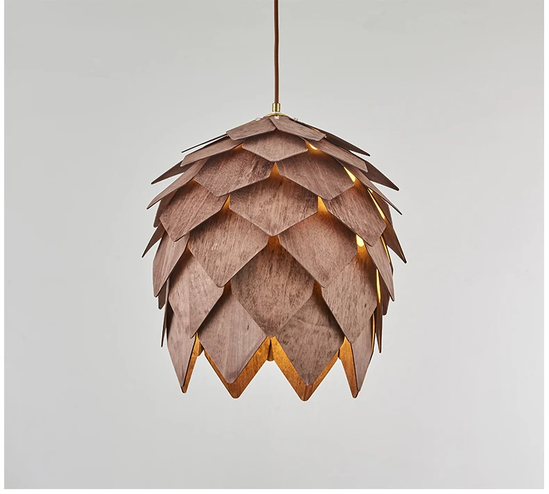 Handcrafted from premium solid wood, its intricate pine cone silhouette casts a soft, welcoming glow perfect for luxury cafés, restaurants, or dining spaces that want to leave a lasting impression. The layered wooden design not only diffuses light beautifully but also adds depth, texture, and organic charm to your décor.